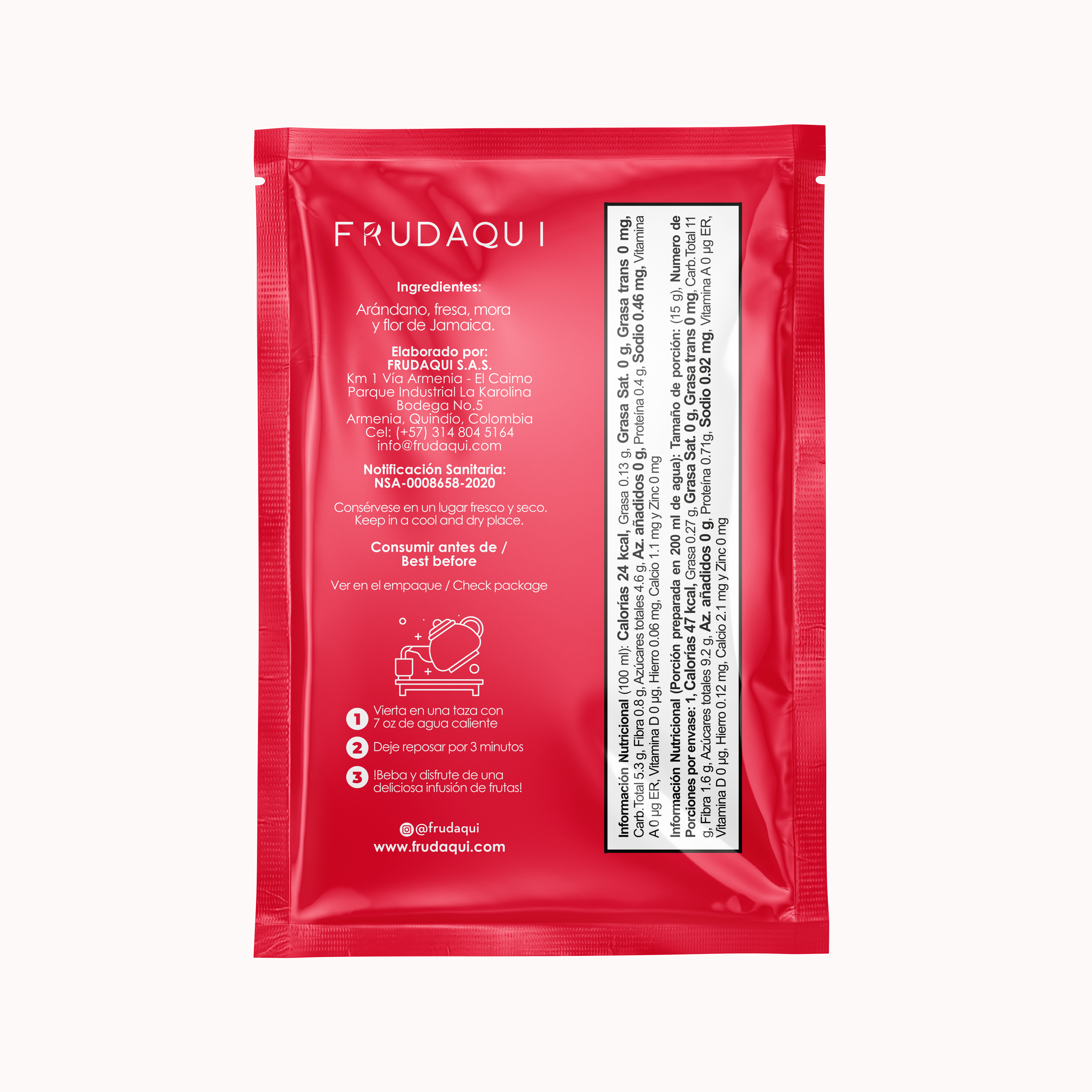 Viaja al paraíso con nuestra Infusión Tradicional Frudaqui a base de fruta deshidratada, una mezcla tropical que ofrece un sabor exótico, refrescante y naturalmente delicioso. Su aroma frutal y su perfil vibrante la convierten en la opción ideal para disfrutar en cualquier momento del día. Perfecta para acompañarte en tus mejores momentos, fría o caliente.